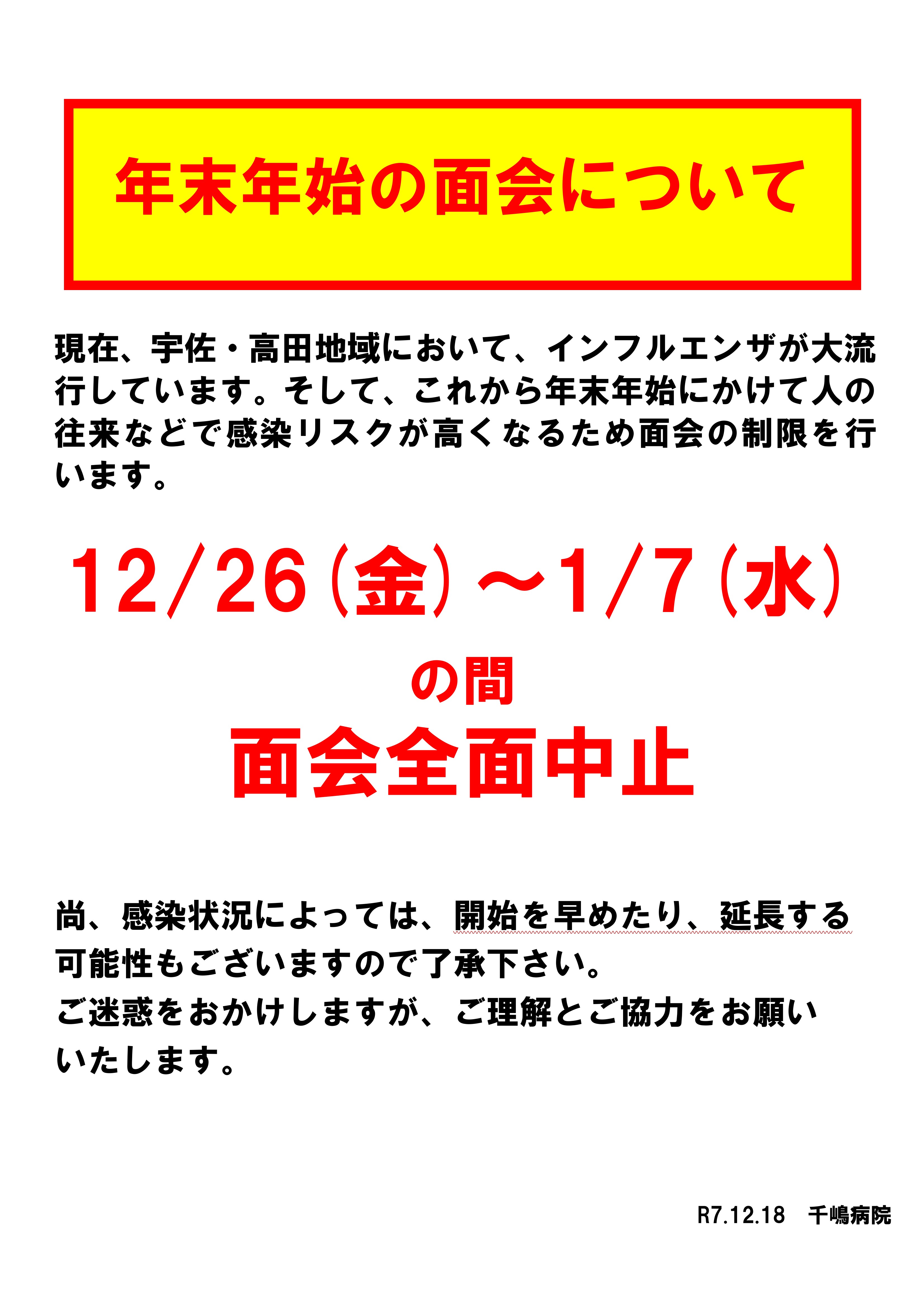 年末年始の面会全面中止についてのお知らせ