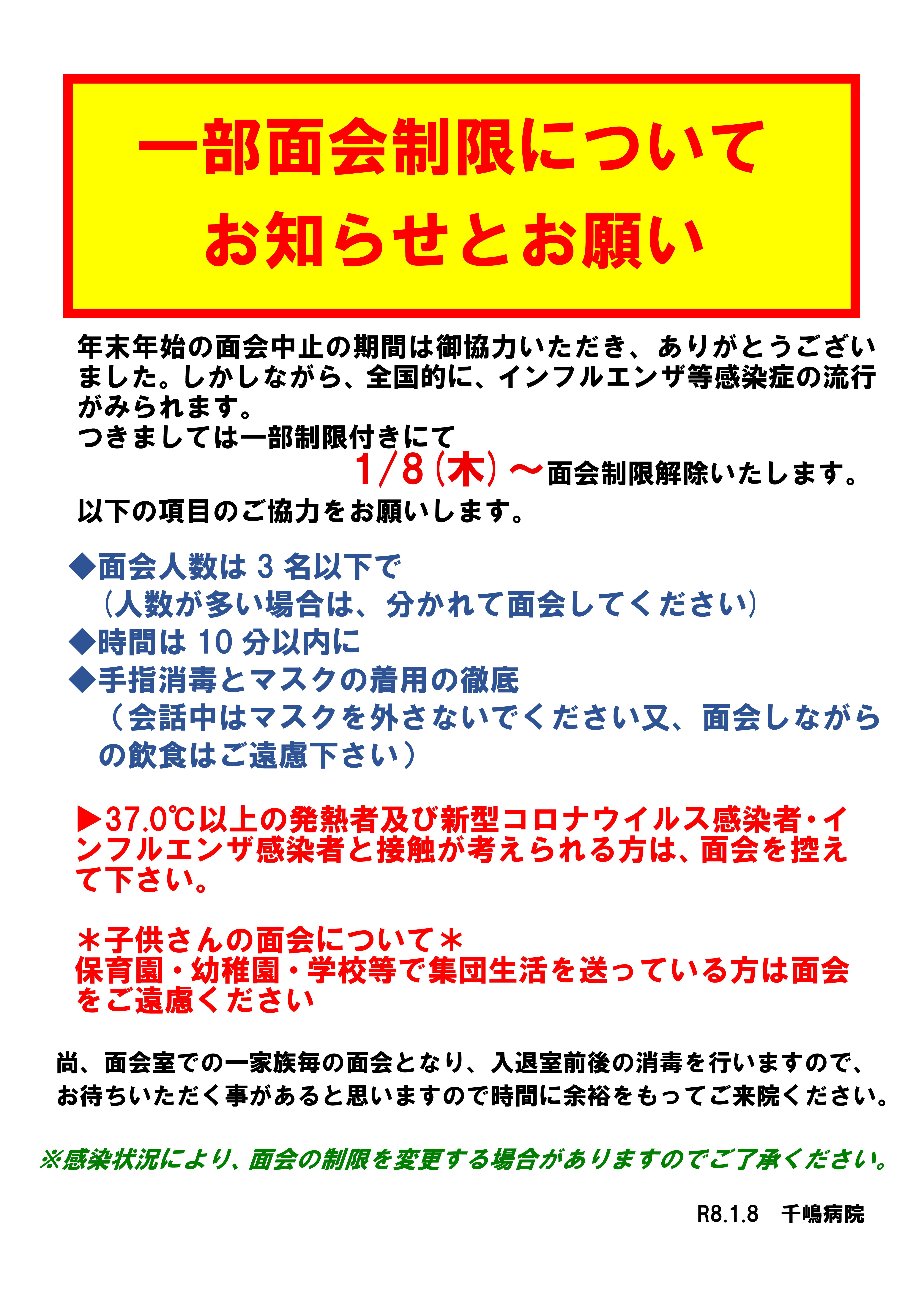 一部面会制限についてのお知らせとお願い